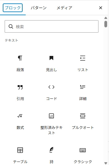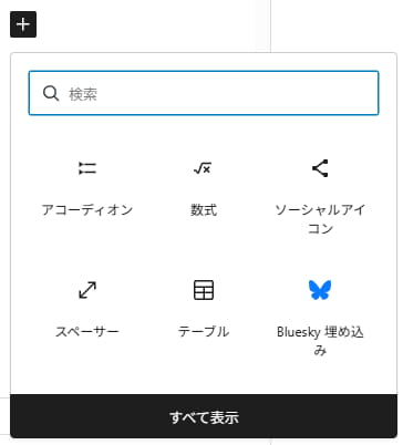 ブロックを追加、変更するときに選択する一覧の項目を表示する/しないの設定ができるようになりました。下記の一覧に表示されているやつです。