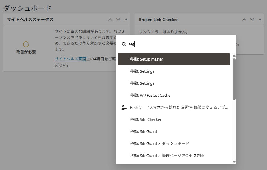 ダッシュボード全体でナビゲーションコマンドが使用可能です。Macのスポットライト検索に近いような感じです。